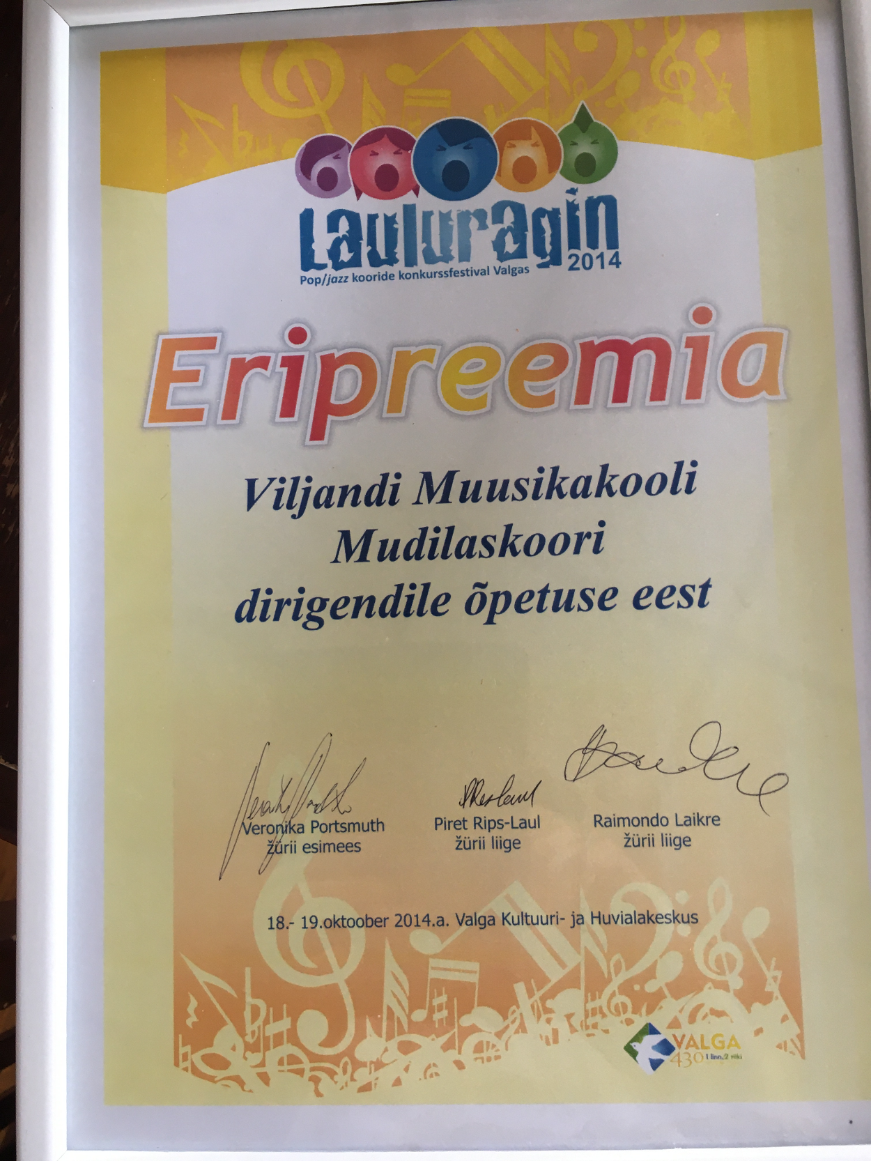 Samuti võtsime 2014.a. osa Pop/jazz kooride konkurssfestivalist LAULURAGIN, kus saavutasime eripreemia.