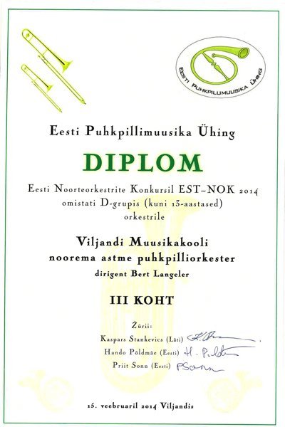 Viljandi Muusikakooli noorema astme puhkpilliorkester sai III koha